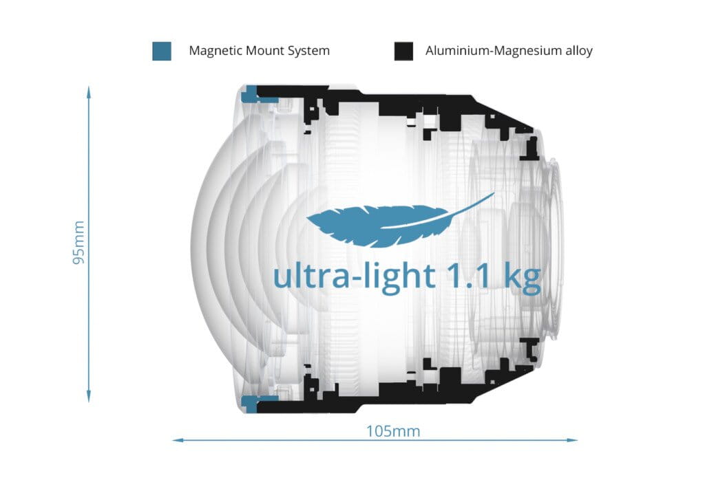 Szczególna uwaga została przyłożona do komfortu użytkowania obiektywu, którego obudowa jest zoptymalizowana pod kątem wytrzymałości i redukcji wagi. Dzięki temu obiektyw cechuje się wyjątkowo kompaktowymi rozmiarami a jego waga wynosi zaledwie 1,1 kilograma. Profil pierścieni ostrości i przysłony został dobrany tak, aby zapewnić wygodę operowania zarówno dłonią jak i przy użyciu mechanizmów follow focus. Dla poprawy stabilności obiektywu w czasie pracy z napędami follow-focus, wyposażono go w stopkę podpierającą, która w zależności od potrzeb może zostać zamocowana w dolnej lub górnej części obiektywu.