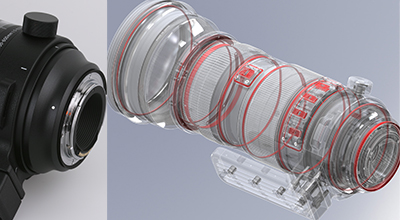 W obiektywie zastosowano 2 soczewki FLD (F Low Dispersion) charakteryzującą się najwyższym znanym poziomem wydajności optycznej oraz 3 soczewki ze szlachetnego szkła SLD (Special Low Dispersion). Dzięki temu zlikwidowano barwne aberracje barwne, tak często występujące zwłaszcza w najwyższych wartościach ogniskowych.